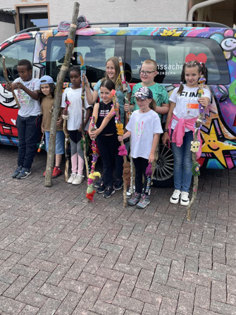 Highlights waren der Besuch der Keltensiedlung Altburg und das Malen und Gestalten von Totempfählen im Gartenatelier des KunstKulturLabors.