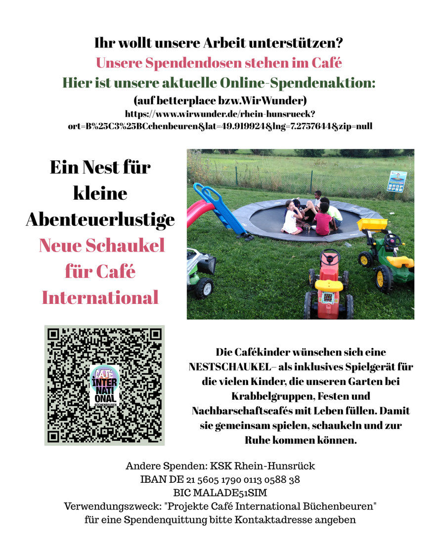 Verwendungszweck: "Projekte Café International Büchenbeuren"