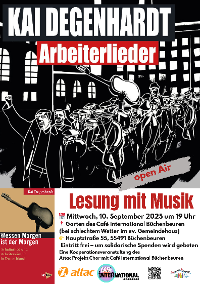 10.9. : Ein großer Erfolg und einen vollen Gemeindesaal hatten wir bei unserer Konzertlesung mit Kai Degenhardt (eine Kooperation mit dem Attac Projektchor) hier der link zu unserer Seite mit der Pressemitteilung